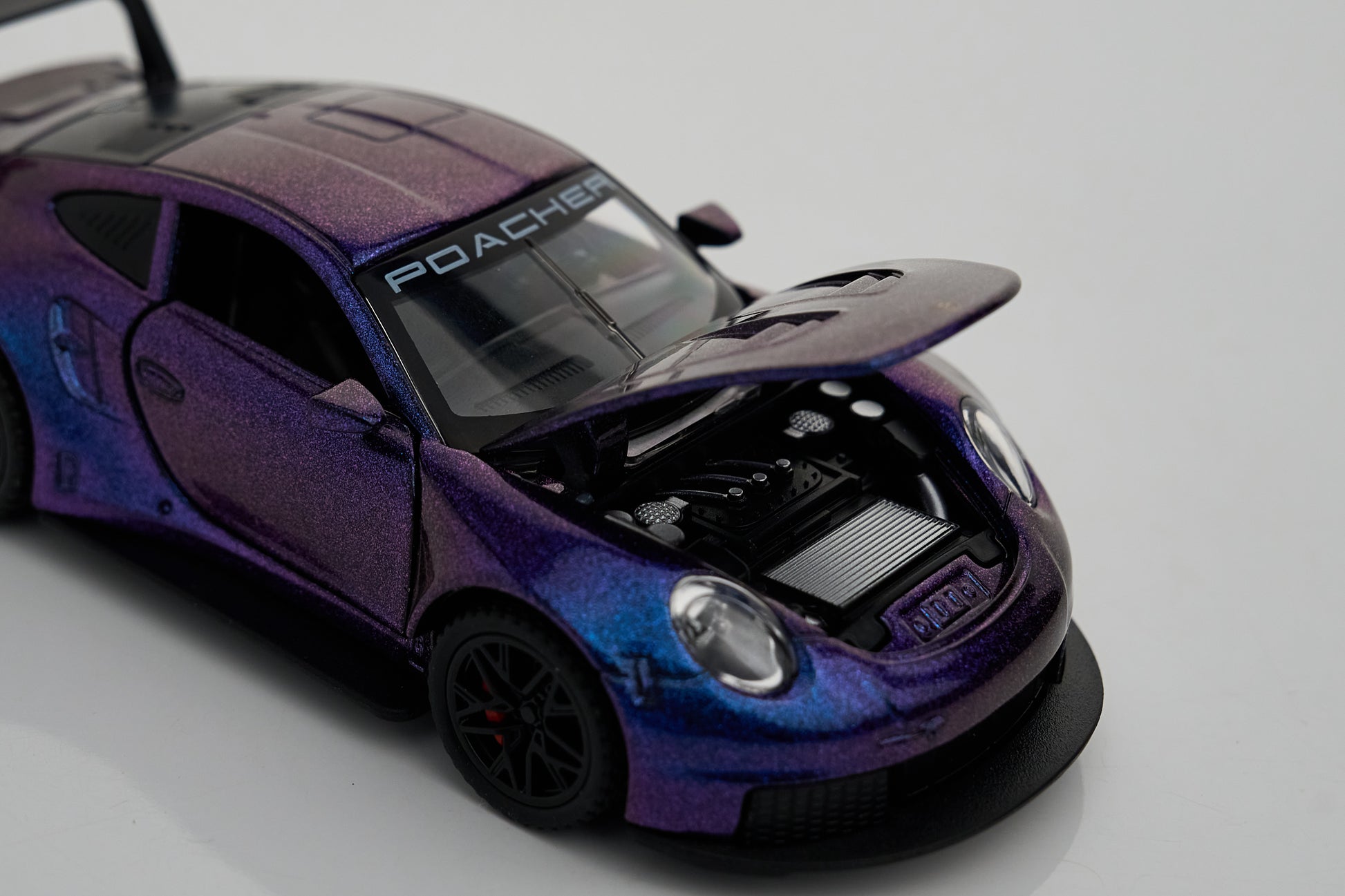 Ready to add a touch of motorsport perfection to your collection? This Porsche 911 GT3 model in stunning iridescent purple is a true statement piece – precision, power, and performance captured in miniature form!